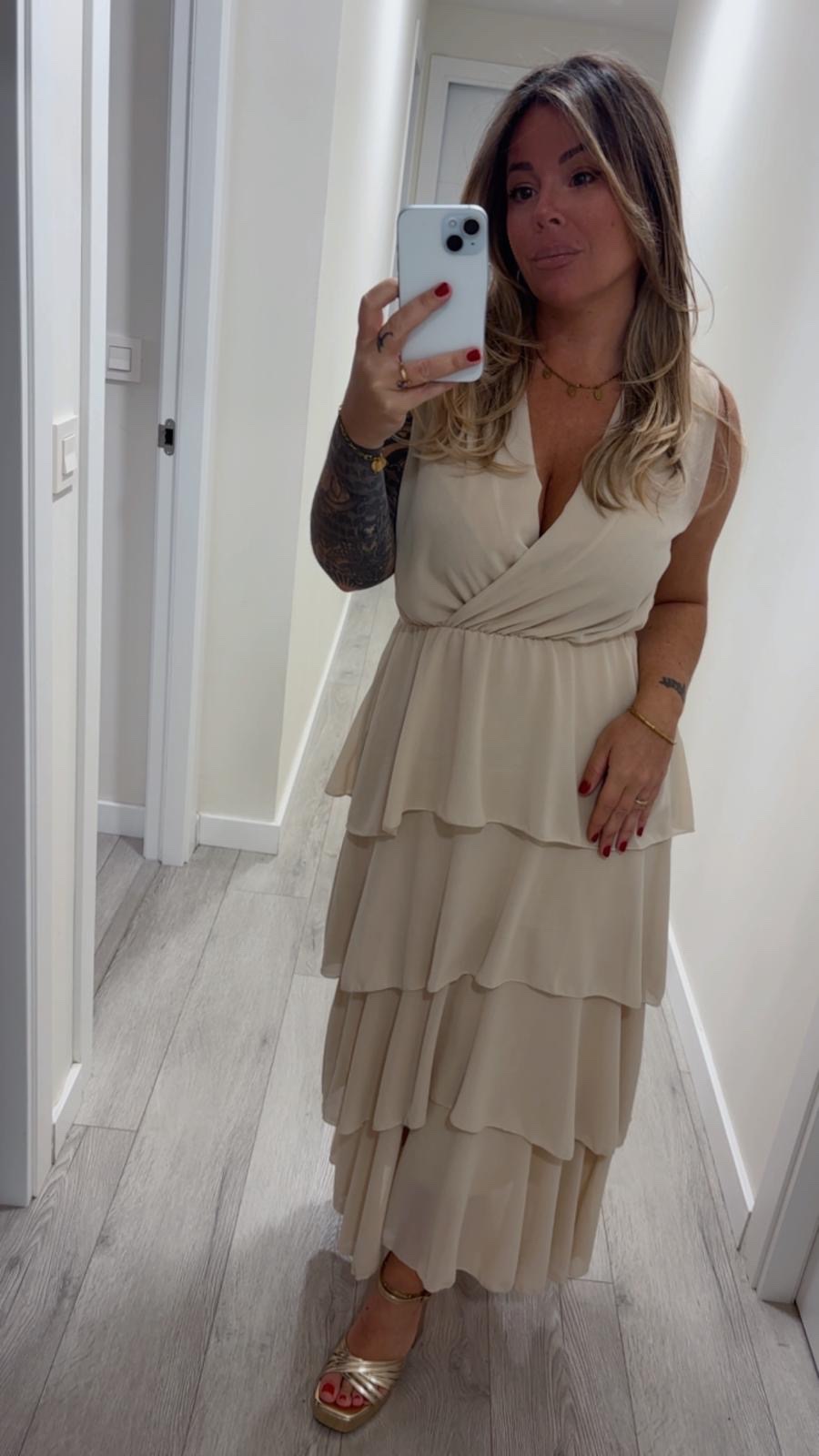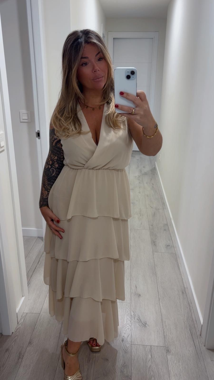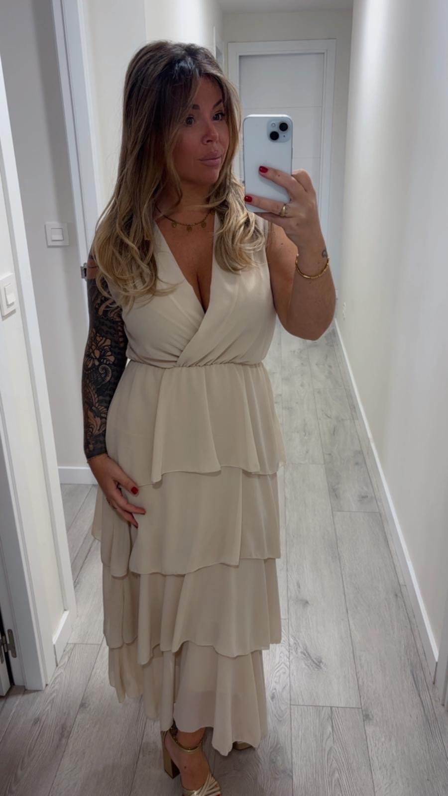 Vestido beige con volante. Talla única hasta máximo una 44