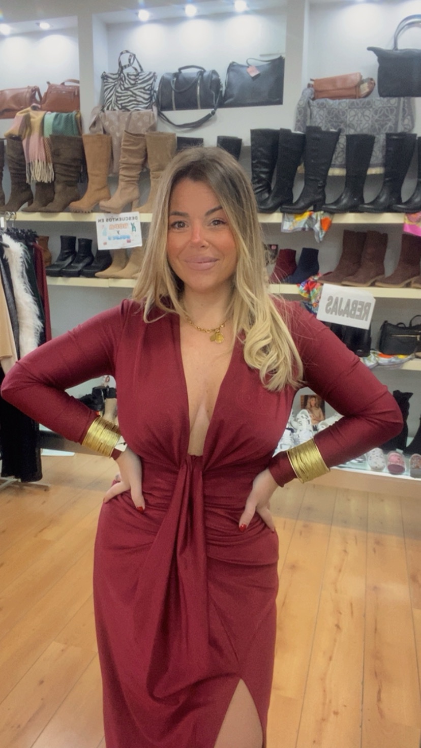 Vestido color burdeos , elástico , talla única , maximo una 42
